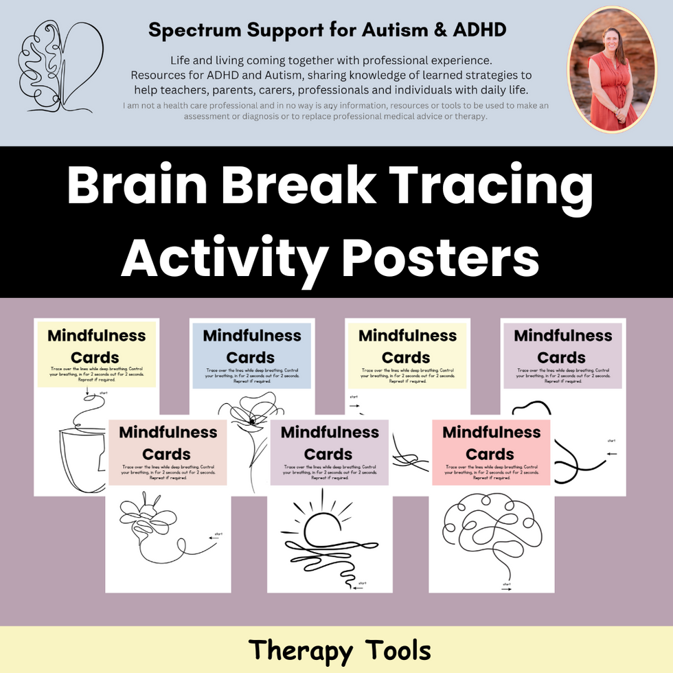 Spectrum Support therapy worksheets, posters and prints provide instant support for Autism, ADHD, anxiety, depression, trauma and mental health. Excellent resources for teachers, parents, therapists, carers or anyone who would like to have more Autism or ADHD Awareness or who needs a little extra support.